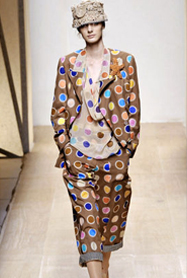 | 波普?qǐng)F(tuán)是近年年大熱的服裝形式。其以亮麗的色彩,無規(guī)則的圖案之一處于時(shí)裝界的主導(dǎo)地位。和輕薄的雪紡、絲綢類面料結(jié)合,活潑的波普?qǐng)D案也顯現(xiàn)出一股浪漫的感覺來。 |
