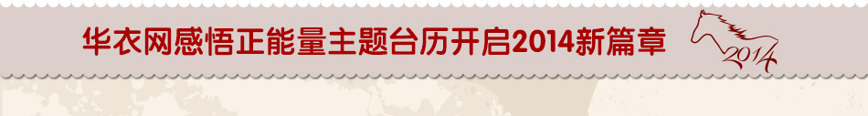 | 華衣網(wǎng)感悟正能量主題臺歷開啟2014新篇章 緊張又刺激的2013年已經(jīng)接近尾聲,服裝行業(yè)這一年里的正能量行為也是不勝枚舉;如何在即將到來的2014年,繼續(xù)保持飽滿的激情和充足的正能量,是行業(yè)內(nèi)每個(gè)個(gè)體都要考慮的。華衣網(wǎng)作為服裝行業(yè)第一網(wǎng)絡(luò)傳媒,在2014年即將到來之際,特地制作了2014感悟正能量主題臺歷,用以回饋各大服裝品牌長期以來的支持與配合,同時(shí)也希望這本充滿正能量的臺歷能為各大品牌的2014添加一份能量,貢獻(xiàn)一份力量! |