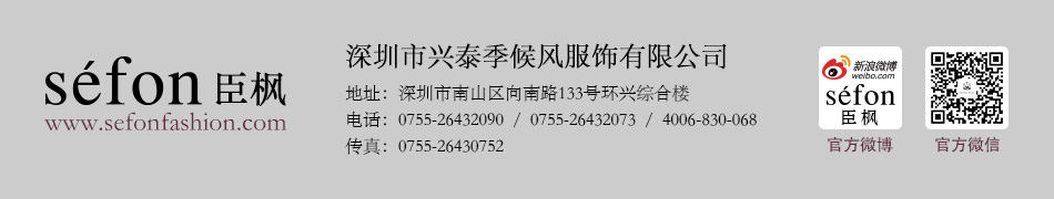 深圳市興泰季候風(fēng)服飾有限公司是一家自主研發(fā)、生產(chǎn)、營銷一體化,并擁有“SEASON WIND(季候風(fēng))”、“séfon(臣楓)”兩個自主女裝品牌的優(yōu)秀品牌女裝企業(yè)。