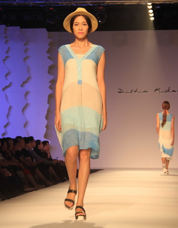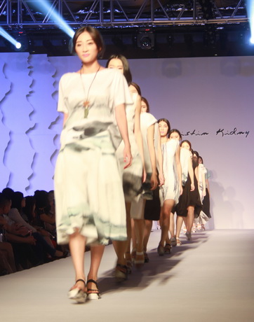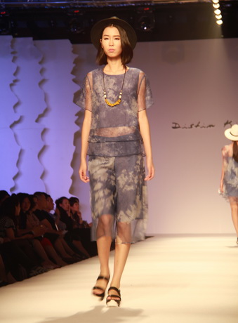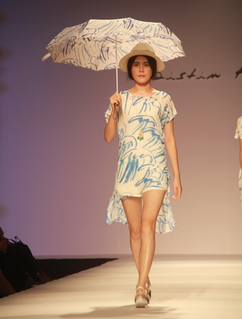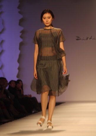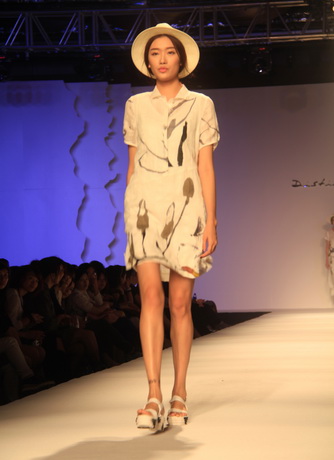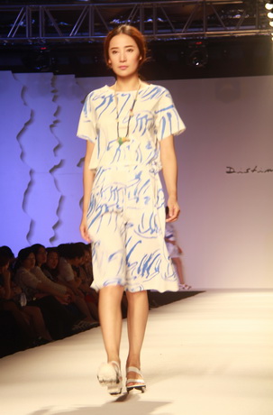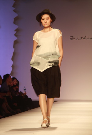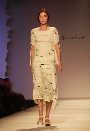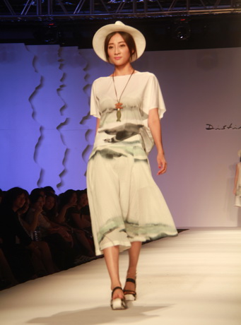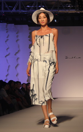 既然是藝術(shù)女裝,迪斯廷.凱的設(shè)計靈感自然和藝術(shù)不分家。就從此次發(fā)布會的幾大系列來說,都會系列的靈感源于楊正新的《群雀》和《竹》水墨系列作品及當(dāng)代畫家吳冠中寫意山水作品的線條元素,設(shè)計出山水空靈和現(xiàn)代隨性兼具的系列作品;摩登系列則選用齊白石的《玉蘭》、門采爾的《房屋與樹叢》等作品,以大氣的演繹手法使原本平面的繪畫作品呈現(xiàn)出立體的幾何美感,使設(shè)計更加國際化;在精品系列中,以精為核,從寫意水墨國畫《云與雁》中汲取靈感,并將素雅的花色繪制于韓國進口花紗面料上,精致的呈現(xiàn)出高雅質(zhì)美。