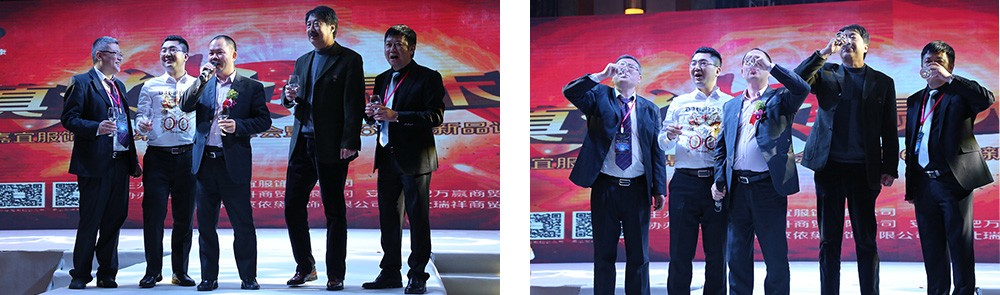 故事的開場,當(dāng)然是嘉宜服飾有限公司董事長林楚杰林董、總經(jīng)理郭洪凱郭總、第一秘蜜安徽省代理商安徽旭升商貿(mào)有限公司總經(jīng)理張正張總、幸運(yùn)女神安徽萬贏商貿(mào)有限公司總經(jīng)理付進(jìn)澤付總,這四位領(lǐng)導(dǎo)一起主持的莊嚴(yán)而隆重的升旗儀式。當(dāng)旗幟緩緩升起,全場嘉賓起立、行注目禮,仿佛也在這冉冉升起的旗幟中看到了嘉宜服飾更輝煌、紅火的未來。