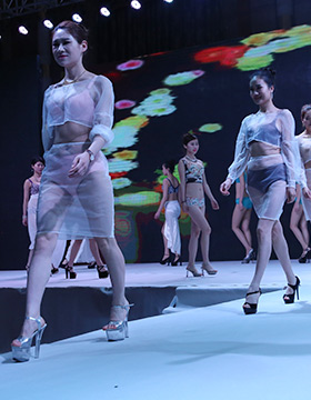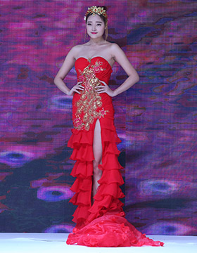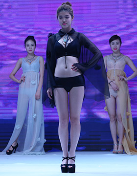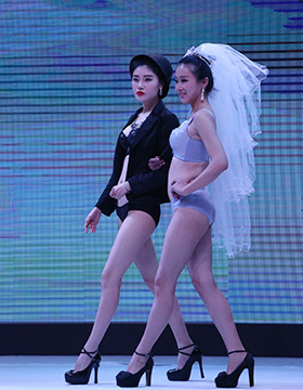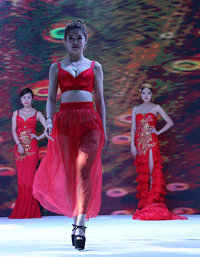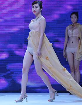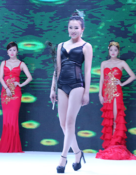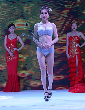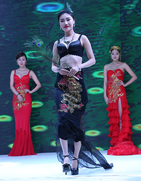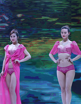 第一秘蜜內(nèi)衣2016秋冬新品,以一襲紅金色刺繡的長裙開場,性感的大紅色,開屏孔雀的背景LED屏,模特們手執(zhí)孔雀翎羽、頭戴同系列的發(fā)飾向我們走來……