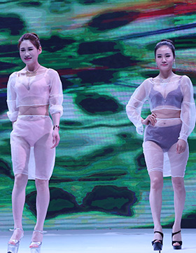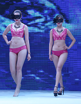而黑色、粉色、冰清藍(lán)、杏色、寶藍(lán)色、桃紅色、熏衣紫等色彩,搭配唯美的刺繡、蕾絲、暗花,更顯精致。而趣味的波普風(fēng)印圖,抽象的線條勾勒的花紋,以及純色無痕文胸的展示,也讓我們在這眾多的新品展示中,感受到幸運(yùn)女神本季多樣的風(fēng)格個(gè)性。