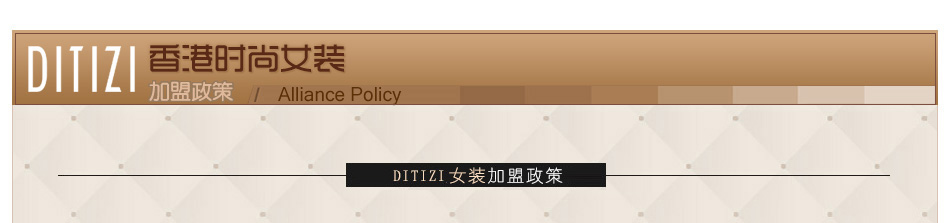 | 香港著名女裝DITIZI迪緹孜,原名D.T.Z,品牌傳承了歐式設(shè)計(jì)的精髓,是真正的高端、大氣、上檔次,DITIZI迪緹孜女裝追求的是簡約的設(shè)計(jì),卻盡顯奢華,服裝專注每一個細(xì)節(jié),品質(zhì)高端,細(xì)節(jié)完美,提升每一位都市女性的穿衣品位。如果你追求完美的穿著和高端的品位,DITIZI迪緹孜女裝一定是你的首選,每一件產(chǎn)品都是精品,每一款設(shè)計(jì)都是精髓。忙碌在職場的白領(lǐng)女性、都市麗人,對于這樣的服裝一定是愛不釋手吧! |