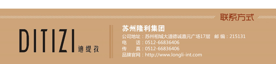 | DITIZI迪緹孜——香港著名時裝品牌,誕生于隆利國際發(fā)展有限公司,總部設(shè)于香港,主要從事設(shè)計(jì)研發(fā)女裝產(chǎn)品。行銷內(nèi)地、香港等多個國內(nèi)外地區(qū),并迅速在各大城市獲得贊譽(yù)。公司聘請香港設(shè)計(jì)師參與設(shè)計(jì),通過自主創(chuàng)新融合國外及國內(nèi)女裝設(shè)計(jì)精華,將品牌時裝定位于28-45歲有內(nèi)涵和品味的魅力女性。她們崇尚生活,追求品質(zhì),獨(dú)立自主,有審美情趣且知性。DITIZI迪緹孜時裝運(yùn)用高級加工技藝和精致高檔的面輔料,對時裝進(jìn)行完美的詮釋,強(qiáng)調(diào)服裝的功能與舒適性。 “DITIZI迪緹孜女裝”自創(chuàng)立以來一直追求高質(zhì)量標(biāo)準(zhǔn),致力于打造一個高品質(zhì)的時尚女裝品牌,純正歐式裁剪,承襲經(jīng)典傳奇,緊貼巴黎、倫敦、米蘭、紐約、香港最新潮流指標(biāo)發(fā)布。設(shè)計(jì)師游走在每個繁華與喧囂的街頭,攫取任何一個動人的瞬間,記錄下靈感來源。這是一個激情與夢想的年代,讓時尚設(shè)計(jì)真正的走到每個人身邊,是DITIZI迪緹孜專屬設(shè)計(jì)師最大的夢想。 DITIZI迪緹孜女裝視品質(zhì)為生命,從設(shè)計(jì)到生產(chǎn),層層把關(guān),注重細(xì)節(jié),通過全球精心挑選高級面料,以進(jìn)口面料,天然面料為主,精湛做工流利裁剪反映在每一個內(nèi)外細(xì)節(jié),極力締造完美非凡品質(zhì)工藝,超越尊貴顧客不斷升級的品質(zhì)期待。每款限量生產(chǎn)與銷售,讓愛美獨(dú)特的女士不撞衫,不從眾。 |
