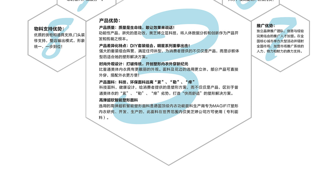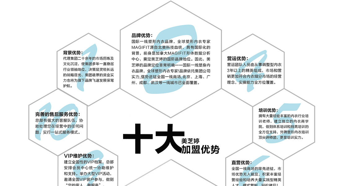 加拿大MAGIFIT內(nèi)衣有限公司的前身是MAGIFIT國(guó)際人體數(shù)據(jù)分析研究機(jī)構(gòu),由全球知名的醫(yī)學(xué)博士、美容美體專家組成,是國(guó)際知名塑形美體機(jī)構(gòu)、服裝品牌、面料商的戰(zhàn)略合作伙伴。2009年,公司推出同名品牌高端塑形內(nèi)衣—MAGIFIT(美芝婷),依托公司人體數(shù)據(jù)分析、科技面料的研發(fā)背景,研發(fā)的產(chǎn)品裁剪立體、穿身舒適,上市即贏來(lái)了“快而舒適”的“塑形內(nèi)衣專家”稱號(hào)!