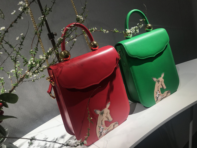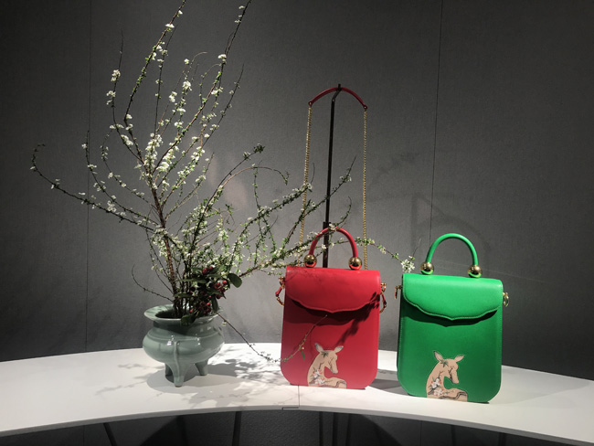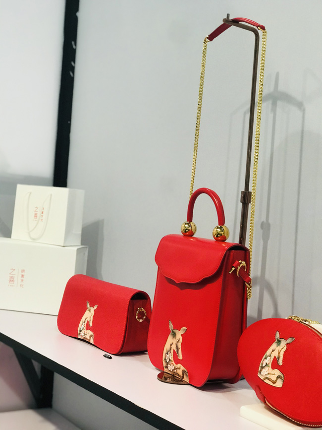 Anna之喜是故宮博物院授權(quán)合作唯一高端皮藝品牌。此次在展會陳列包款為「紫禁瑞鹿」系列及之喜&故宮聯(lián)名出品「千里江山」「吉慶有余」「如意海棠」中國盤系列!紫禁瑞鹿系列產(chǎn)品創(chuàng)作靈感來自《清宮獸譜》鹿圖,在傳統(tǒng)文化中,“鹿”為神奇之瑞獸,“鹿” 與 “祿”諧音,身姿神圣而高貴,寓意“福祿”,設(shè)計師以故宮博物院藏品 《清宮獸譜》 中的瑞鹿圖為產(chǎn)品圖案設(shè)計原型,提煉“鹿”剪影的靈動外形,結(jié)合梅花枝頭寫實手法,將傳統(tǒng)美學(xué)與當(dāng)代藝術(shù)設(shè)計結(jié)合。「千里江山」中國盤,圖案來源:故宮博物院館藏北宋《千里江山圖》,產(chǎn)品亮點:秉承簡約、精致、卓越的設(shè)計理念,將東方雅致生活美學(xué)與歐洲傳世皮藝制作工藝相結(jié)合,再經(jīng)雕刻師手工雕刻,彩繪師手工描繪用于產(chǎn)品設(shè)計當(dāng)中!