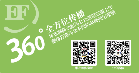 華衣網(wǎng)——服裝品牌網(wǎng)絡傳媒先鋒,國內(nèi)頂尖的時尚品牌專業(yè)網(wǎng)站之一,為服裝品牌提供全方位的網(wǎng)絡宣傳和加盟服務。在時尚、品牌、專業(yè)性和權(quán)威性上具有無可比擬的優(yōu)勢,擁有國內(nèi)最專業(yè)的服裝服飾品牌數(shù)據(jù)庫和行業(yè)資料。追求最快、最新、最專業(yè)的信息更新,引領時尚潮流,有效提升品牌價值。