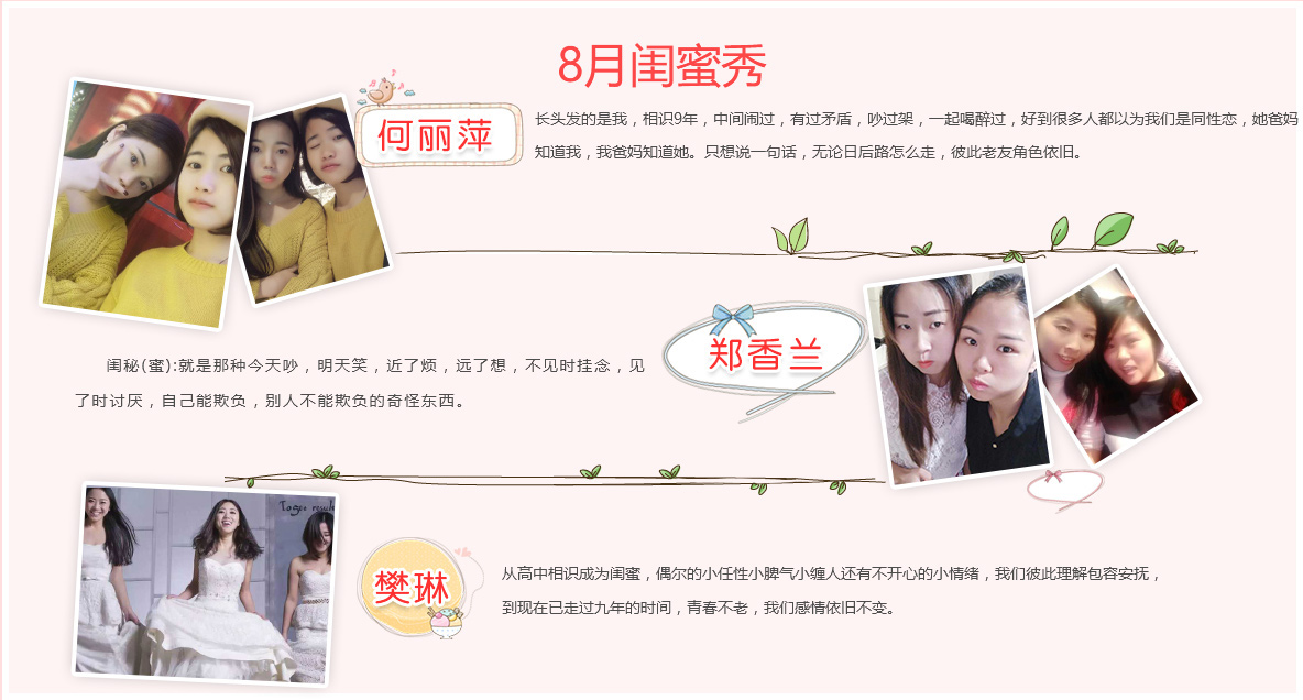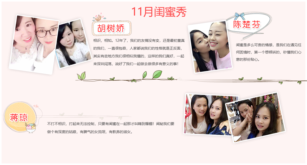 我們每月會展示一組感人閨蜜,展示出她們從相識、相知、相處的每一個動人之處。